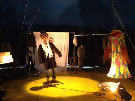 qui mêlent des éléments naturels : plumes, sable, bois brut, cailloux, mais aussi vêtements, plumeau, bulles de savon… En 2010, il crée sa compagnie " Tricoteries & Cie ", dans laquelle il développe son univers sensible en