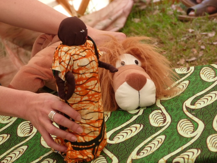 poupées. Dans « Asukilé et le vieux lion », l’interaction avec les enfants se fait sous plusieurs formes : l’invitation au