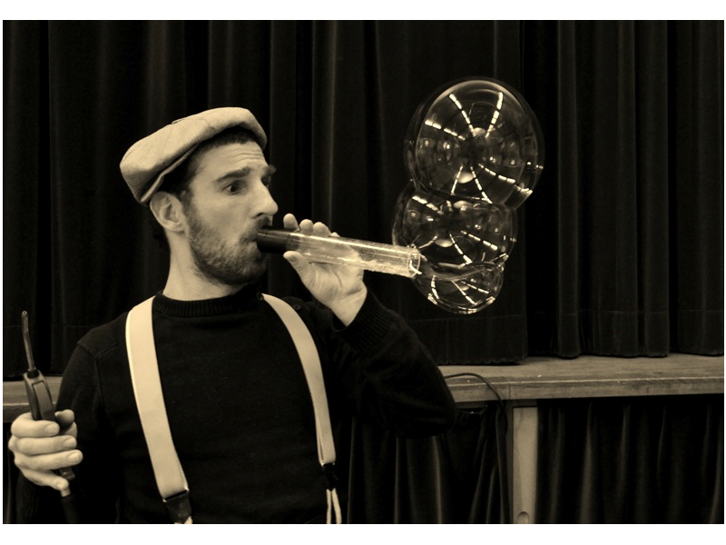 Présentation des artistes Sébastien Kauffmann, jongleur et manipulateur Depuis 1995 il pratique le diabolo qu'il mêle à de la danse. En 2005, il commence ses recherches sur les bulles de savon, qui l'emmènent à la