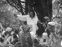 sous les arbres de la forêt, dans des endroits magiques, il raconte